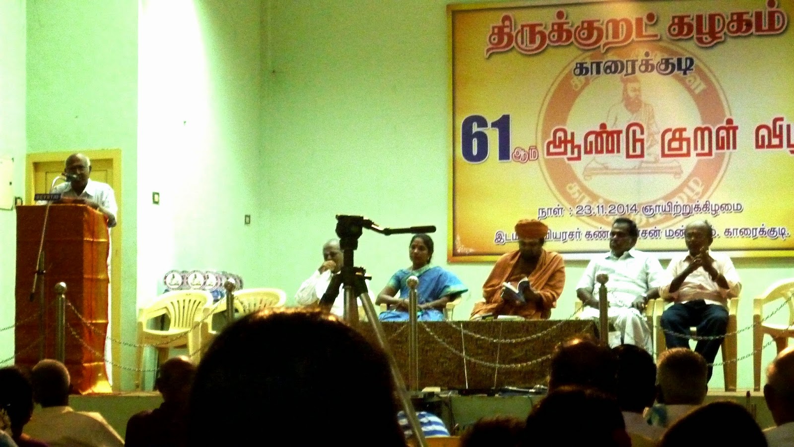 61 ஆண்டுகளுக்கு முன் , எனது பெரிய மாமாவு( திரு . வ. சுப்பையா அவர்களுக்கு ) க்கு 20 வயது. இன்றைக்கு நடிகர் நடிகையருக்கு ரசிகர் மன்றம் ஆரம்பிக்கும் அந்த வயதில் அவர்கள் திருக்குறட் கழகத்தை (குறள் ) இலக்குவன் போன்ற நண்பர்களுடன் இணைந்து ஆரம்பித்தார்கள். அந்தக் கழகத்தின் 61 ஆம் ஆண்டு விழாவை எனது மூன்றாவது மாமா லயன் வெங்கடாசலம் அவர்கள் பொருளாளராக இருந்து சிறப்புற , களிப்புற, உவப்புற நிறைவேற்றினார்கள். அவ்விழாவினைக் காணும் பாக்கியம் எனக்கும் கிட்டியது. அங்கே கிடைத்த சில திருக்குறளின் பொன் துளிகளை இங்கே பகிர்வதில் மகிழ்கிறேன்.